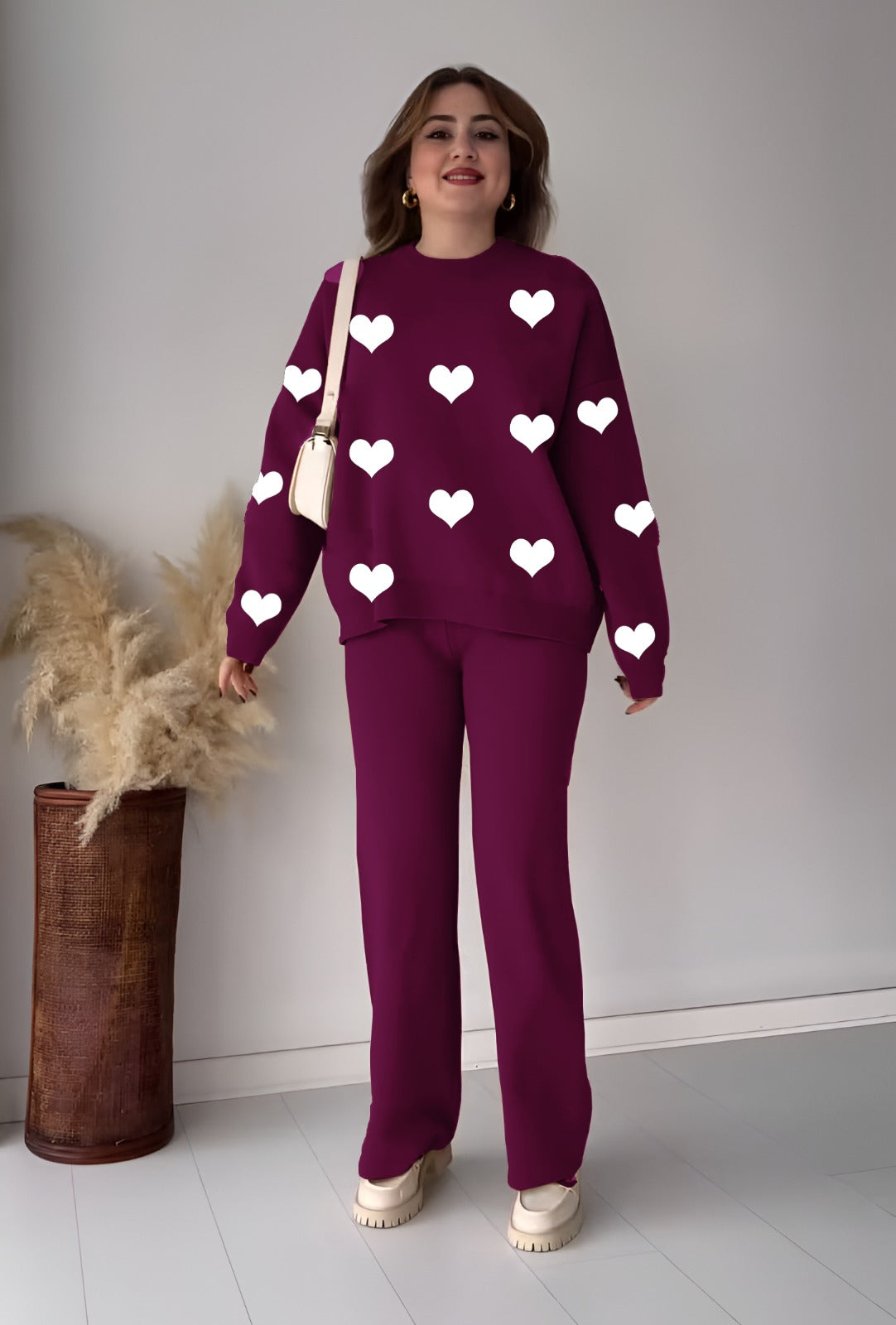 Heart Printed Sweat Shirts Trouser For Girls & Womens